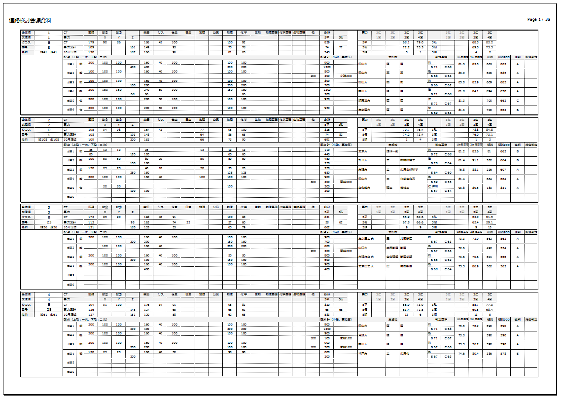 クラス担任の方にはAO・推薦用の志望校や評定などの活動情報を入力してもらうことでAO・推薦用の進路検討会資料も出力することができます。