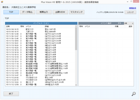 このツール一つでデータを一元管理するだけでなく、進路指導に必要な各種管理帳票を簡単に出力することができるようになります。
