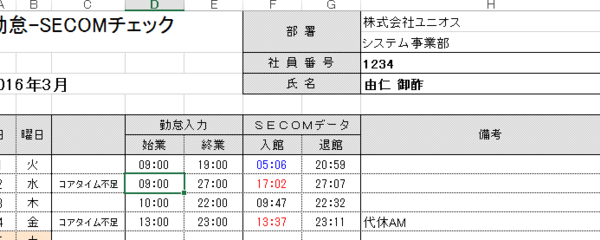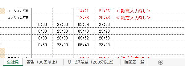 勤怠報告と入退出ログをマッチングすることで本当の勤務状況を把握することが可能です。手作業では長時間かかる作業もツールを使えば数分で全社員分チェックができます。