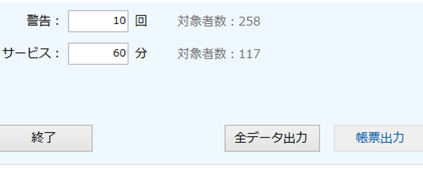 遅刻早退回数やサービス残業時間など特定の条件設定を行うだけで対象社員を瞬時にリストアップできます。